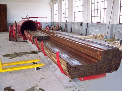 2、加入防腐剂:在保持真空的情况下通过阀门加入防腐剂,以确保相同情况的空气被截留在木材细胞中。