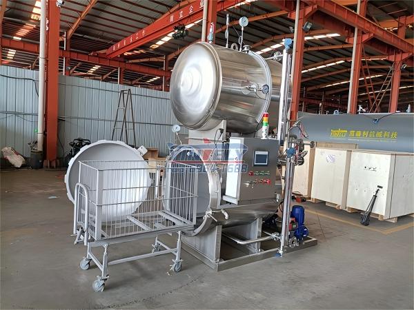 卧式蒸汽杀菌锅:批量处理(如每锅 500-1000 罐),搭配自动进出料系统,适合罐头厂。