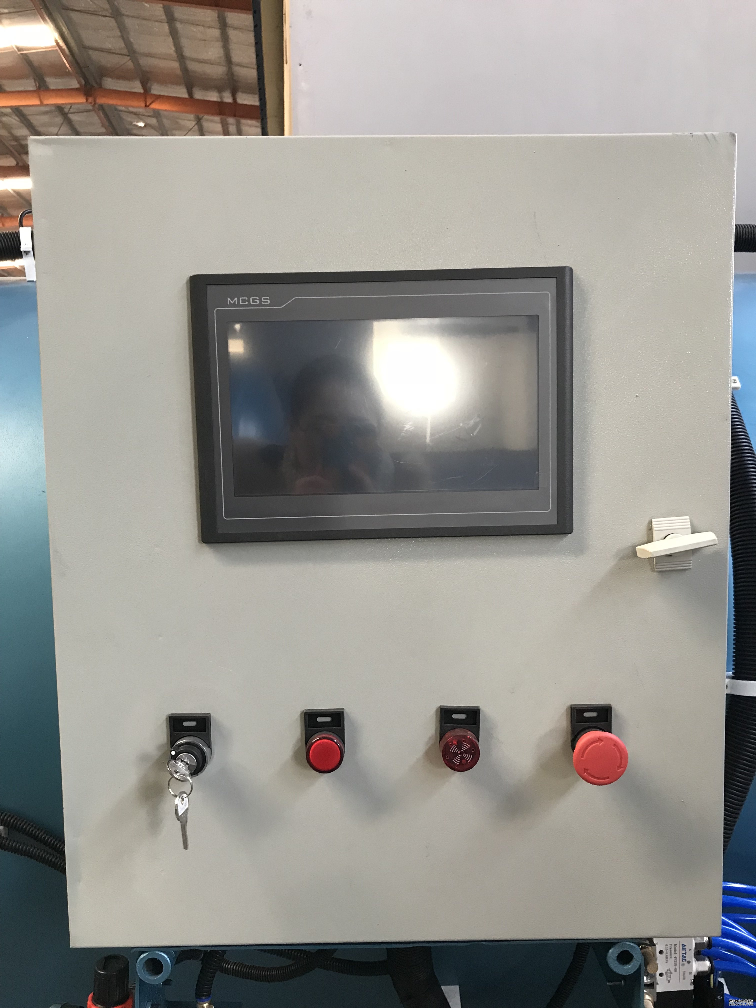 5、关闭空压机、关闭控制箱电源开关,关闭密封圈进气开关,打开放气开关,打开手动连锁,最后开硫化罐门取被硫化好的货物。